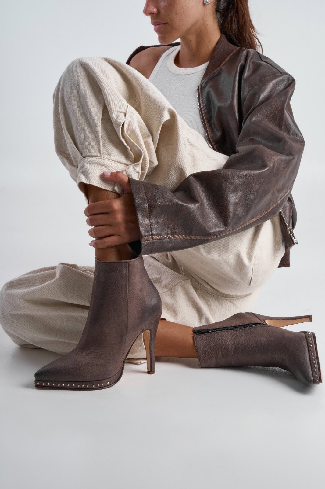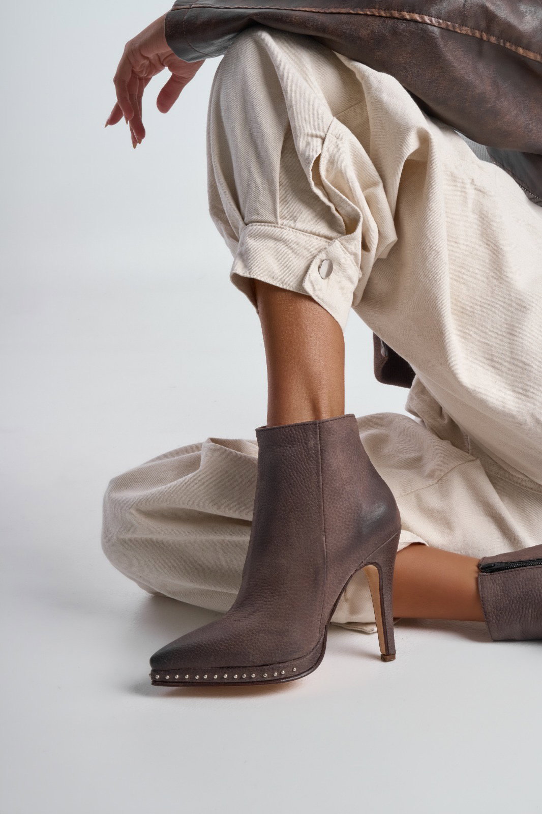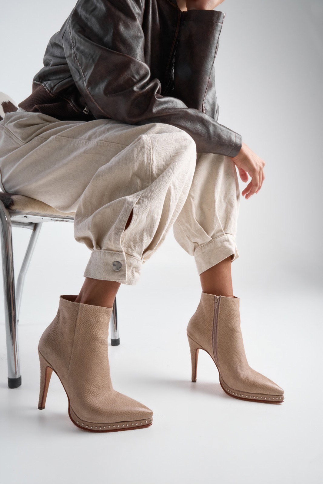 Botas Charo Material: Cuero Altura de taco: 10,5 cm Altura deplataforma:1,5 cm Altura de caña:16cm Horma: Normal Detalle:Cuero graneado, tachas en plataforma Disponible: 36 al 40